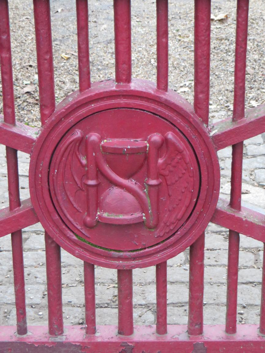 The splendid example at the top of this page is on the roundels on the Linden Grove entrance gates to Nunhead Cemetery.  This is one of London’s Magnificent 7 Victorian cemeteries.  They were created and cast by Robert Stephenson who is a lecture on death and funerary commemoration  and is also known as ‘Dr Death’.
