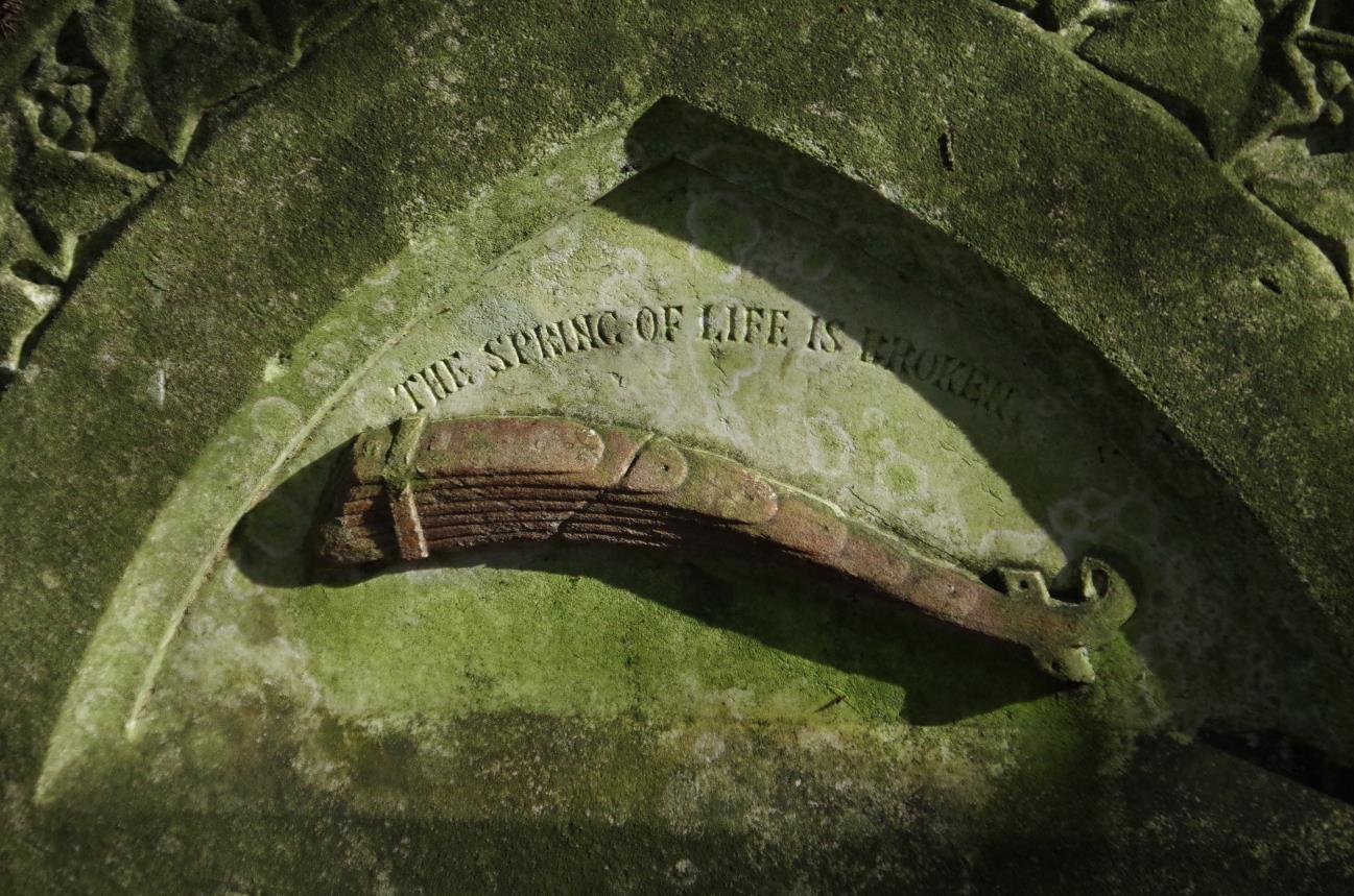 But let’s digress for a moment. This is a well carved leaf spring which is one of the earliest forms of suspension in a wheeled vehicle. Leonardo da Vinci used them in his own design for a self-propelled car. The one of Mrs Cook’s tombstone is an example of a multi-leaf spring in which leaf springs of varying lengths have been stacked on top of each other, sometimes up to 20 at a time, to enable the vehicle’s load to spread more widely.