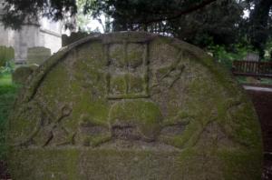 Douglas Keister has suggested that the skull and crossbones slowly began to be replaced by the much less stark and macabre ‘Death’s Head.’ This is a human face with wings on either side of it. I’ve always known it as the ‘winged cherub’ and there are also several good examples within the churchyard.
