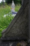 This is less ornate and, instead, features vine leaves cascading on a Celtic cross with again the very ornate combined letters of IHS in the centre of the cross, or the nimbus, with a dedication below to Matilda Morris who died on 10 December 1881. Again I haven’t been able to find out anything about her but research is ongoing.