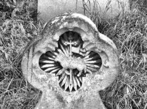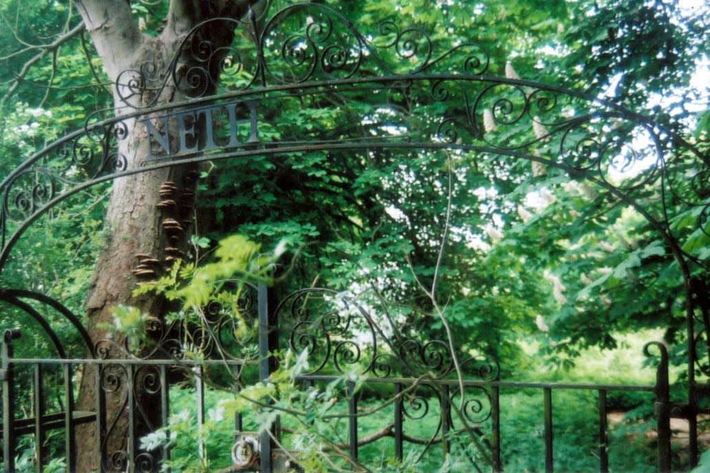 I first visited Netherne Hospital cemetery on an overcast day in May 2007. It’s located at the edge of a large farmer’s field and is a broad, sloping strip of land bordered on three sides by huge, majestic, spreading horse chestnut trees. You can look across the cemetery to the local beauty spot Farthing Downs in the distance. The trees were luxuriantly leafy on my visit and the graveyard certainly looked more appealing than in the photos I’d seen of it on an urban explorer’s website. He had visited it in January when it looked very desolate and forgotten. But on that day in May I saw large white candles of horse chestnut flowers in abundance as I peered through the two elegant, probably Victorian, iron gates. Once they must have had Netherne Asylum in large iron capital letters over the top of them but now only ‘NETH’ remained. They were almost being engulfed by large branches and leaves trying to force their way through. ‘Someone will steal them for scrap.’ I thought to myself as I pushed one of the gates open and entered.