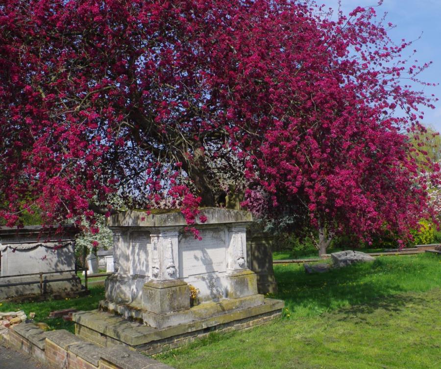 Nature has decided to burst forth now that the sun’s out and suddenly everything’s out at once. West Norwood Cemetery basked in a warm glow and its two terracotta mausoleums; the Doulton and the Tate, seemed to be glowing. I walked along the path from the entrance towards Ship Path and realised again how beautiful a cemetery can be in spring as new life appears amongst death.
