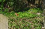 A flash of russet behind a group of headstones caught my attention and I saw an adult fox selecting a good place in a patch of foliage as his mattress in which to have an afternoon kip. After he tucked himself in he then spotted me and got to his paws and limped off with difficulty. He appeared to have a bad problem with one of his front paws and I felt guilty for having disturbed him.