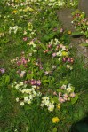 A queen wasp flew indecisively above one group of primroses as if unable to choose which one to land on and so evaded my camera. A Queen wasp is one of the 7 signs of Spring as they awake from their winter slumber. Multi-coloured carpets of primroses were everywhere between monuments and memorials and butterflies were on the wing obeying the imperative being to mate.