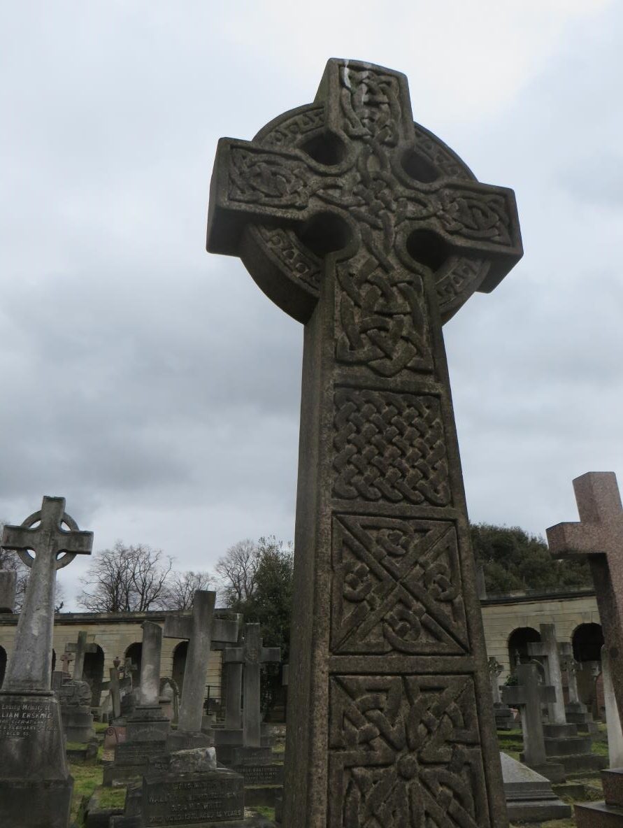 It’s a real gem and is the unashamedly Art Nouveau headstone dedicated to Amelia McKeown. Its modest size and poignant dedication have always impressed me and the primroses beneath it emphasised its deep blue colouring. This had been a chance discovery a few years ago when the main entrance had been closed for building works and visitors had had to enter via a side gate. Sometimes the road less travelled can bring the unexpected to your notice.