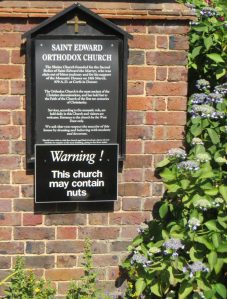 Eventually the large rambling Victorian South station chapel buildings came into view. The station buildings fell prey to arsonists in the 1970’s and were subsequently demolished. But the platform has been left in place and a small yew hedge marks what was once the track bed. The station chapel and mortuary chapel are now the home of the Brotherhood of St Edward. This is a sect which has an Orthodox background and when I last visited had had a healthy number of young members. However, times change and now there are only 4.
