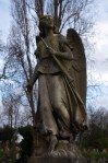 I have seen an example of an angel blowing a trumpet in Tower Hamlets Cemetery and this lovely example comes from St Mary’s Catholic cemetery which nestles next to its larger neighbour, Kensal Green. She is on top of the Abreu monument.