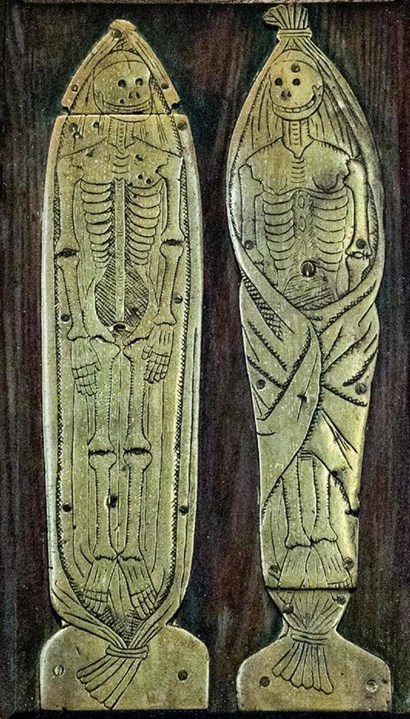 While exploring Kent churchyards prior to the Coronavirus outbreak I found 17th headstones with angel heads on them with trumpets surrounding them. In this one the trumpets are crossed like long bones beneath the angel head.