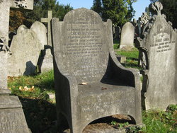 This elegant chair is on the grave of Henry Russell and his wife Hannah. He was a prolific composer and one of his most celebrated works is still performed today. He was born in Sheerness on Sea in Kent which seems appropriate for the composer of ‘A Life on the Ocean Wave’. Henry grew up in the Anglo-Jewish community of Blue Town and he started his musical carer early at the age of 3. However, at 10 he was working in a local apothecary’s shop. This didn’t last long as it’s rumoured that he