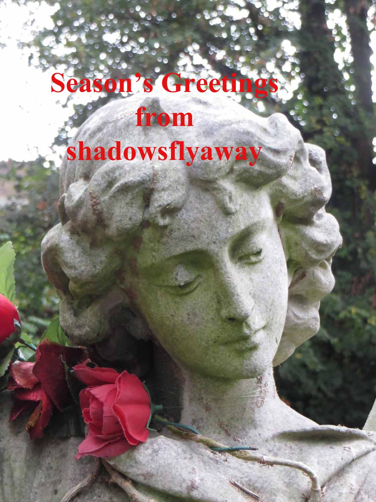 The angel on this year’s card comes from Brompton Cemetery and she often wears a coat of ivy.