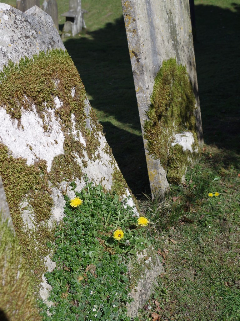 St Peter’s is a really pretty and ancient church surrounded by a small churchyard. Spring flowers were dotted around the headstones and in the remembrance section by the wall. Bluebells were still in bud, there was the understated yellow of primroses, purple violets, dandelions and the leaves of Garlic Mustard gave colour around the stones There was a part of the churchyard that was overgrown and a side path led to a more modern section. But I wasn’t alone as I explored. 2 squirrels cavorted amongst the large trunks of the yew trees and from the large field beyond the churchyard wall there were many enthusiastic baaa-ings and bleats from a flock of sheep and lambs.