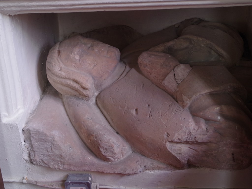 There is a wooden effigy, split into 2 halves, on one side of the altar which is of a 15th century priest called Macobus Kasey who died in 1512. However, there was no guidebook to tell me anything more.