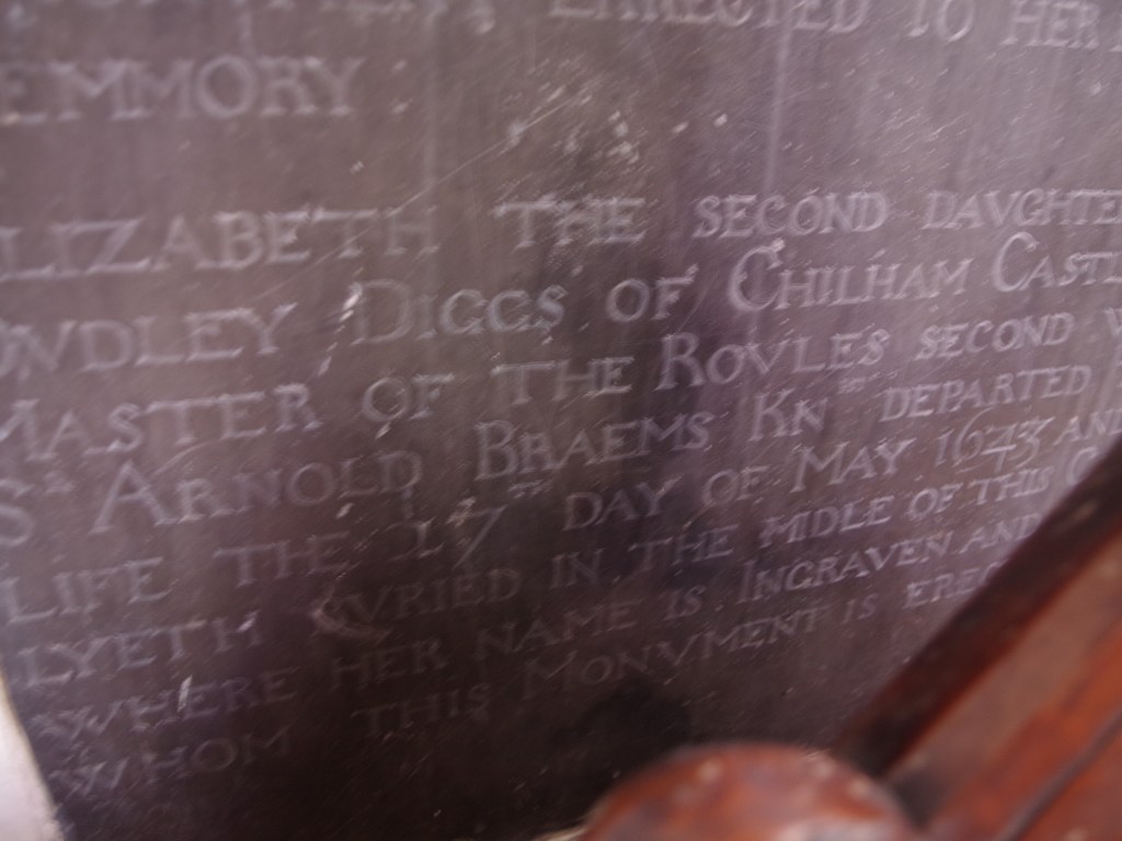 There is an ancient memorial set in the chancel wall on the same side as the effigy. It has a date of 1635 on it but I am not sure if it’s a headstone or a memorial. I wanted to take a photo but there was a chair in front of it which I decided to move. However, the chair weighed a ton and it felt as if someone was actually sitting in it. In the end I had to drag it across the tiles but only a little way. I took a photo of the memorial and then decided to take another one of the effigy. My camera wouldn’t focus. It had been working perfectly before I moved the chair. So I dragged the chair back into position and the camera worked again. A little strange I thought.