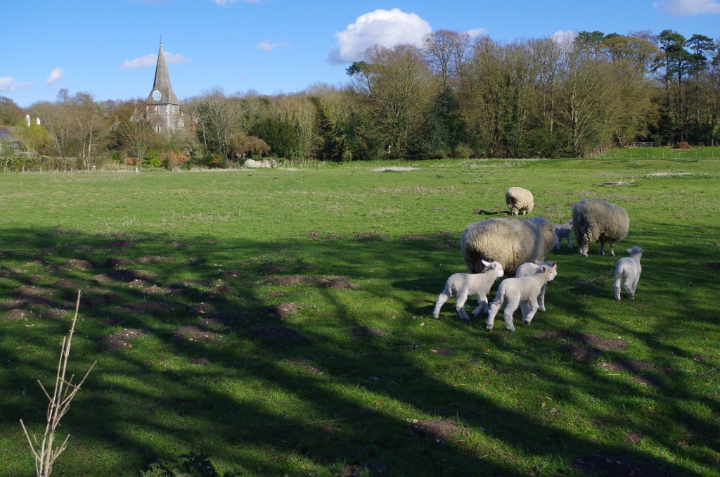 But it was time to go and have a look at the field of sheep and lambs and catch a view of the church from across it.