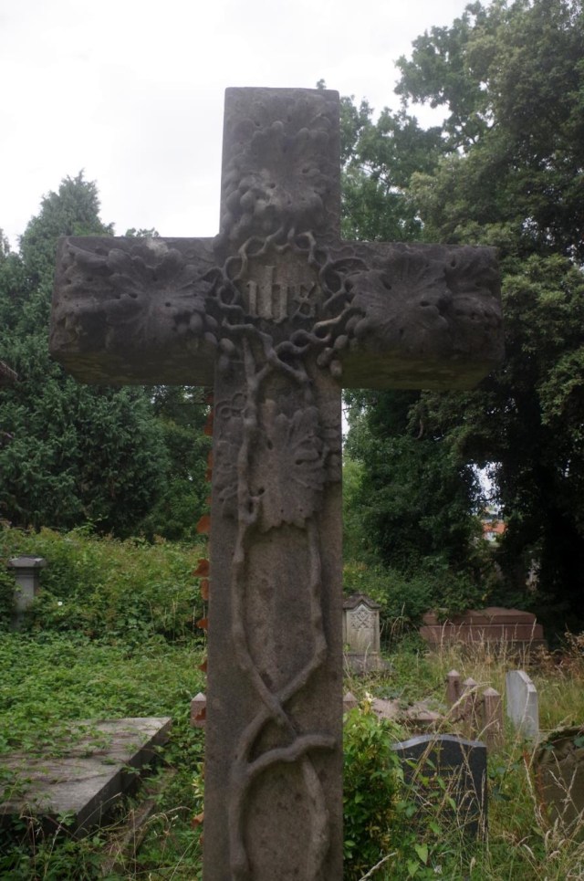 These two fine examples come from Kensal Green cemetery and demonstrate how well a grapevine translates onto a cross. Note the three letters in the centre of the Cross which are IHS combined together. This is a Greek abbreviation for Jesus Christ, Man and Saviour which is ‘Iesus Honinum Salvator’ which translates as ‘Jesus the Saviour of Man’.
