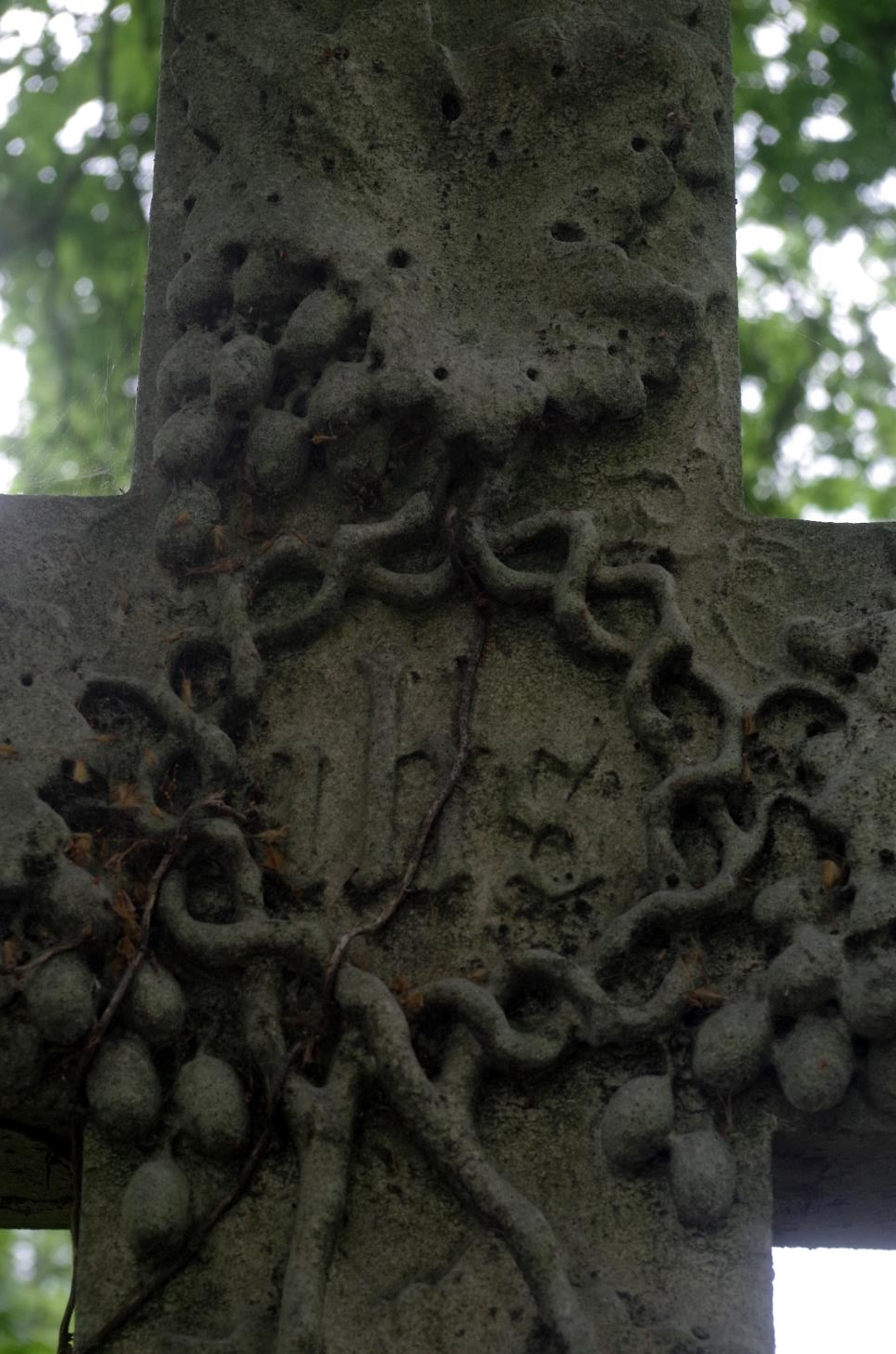 This is an example from Brompton Cemetery and here the grapevine and leaves form an intricate pattern around the cross. I may not be able to read the epitaph on the flat slab beneath until the winter die-off.