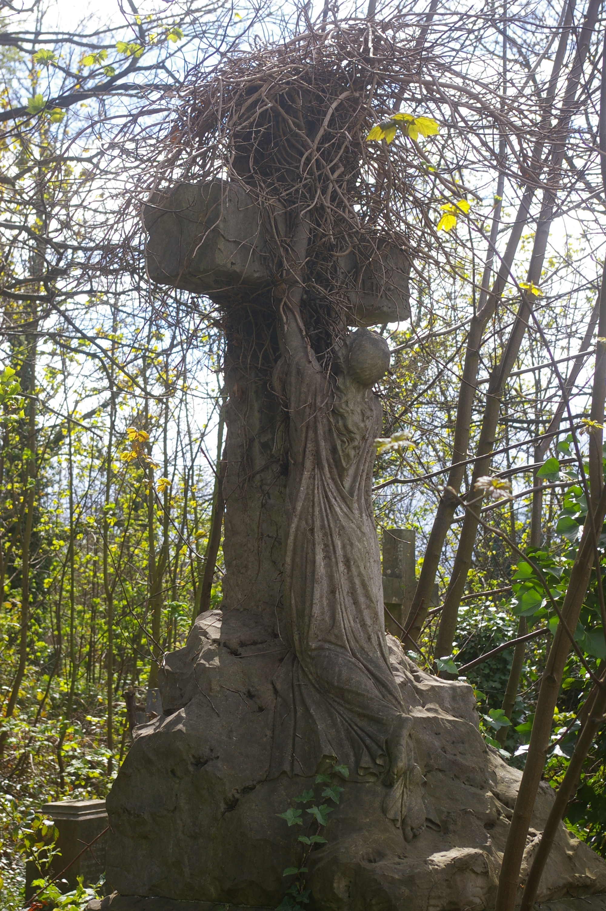 They’re not angels as they don’t possess wings and angels didn’t begin to appear in Victorian cemeteries until the late 19th century. But they are one of the few cemetery symbols inspired by a popular hymn. It’s also a Protestant motif and was the only way in which a cross would have been permitted in a Victorian cemetery until near the end of the 19th century. This was due to the religious wars that were raging at the time.