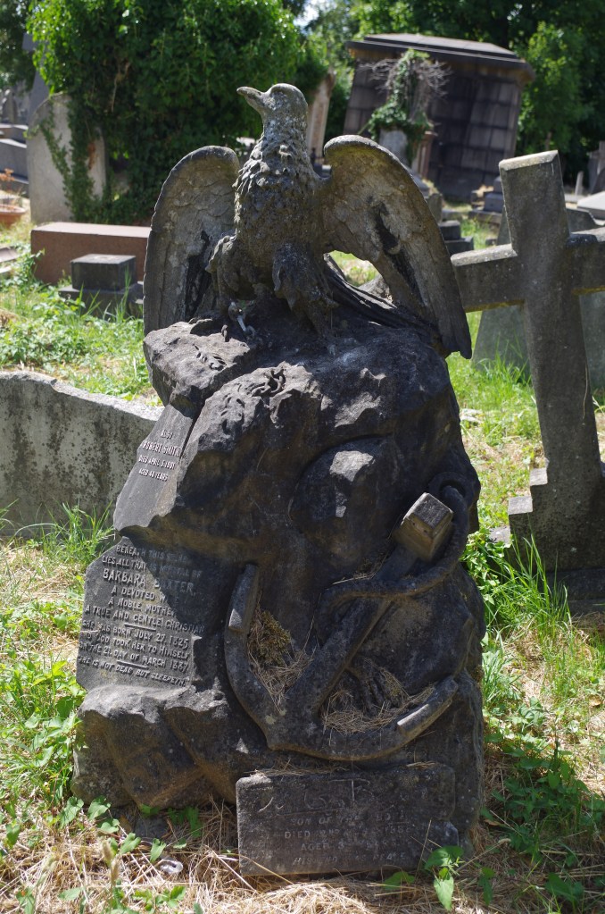 The Rock is an overtly religious symbol and is often surmounted by another symbol. An angel looking somewhat precarious on top as above, a cross, an anchor and even a pair of bronze eagles on top of the one below. Although sadly only the talons remain clutching on for eternity. This is the Loeffler monument in London’s Brompton Cemetery. (You may have to zoom into see the talons but they are there).