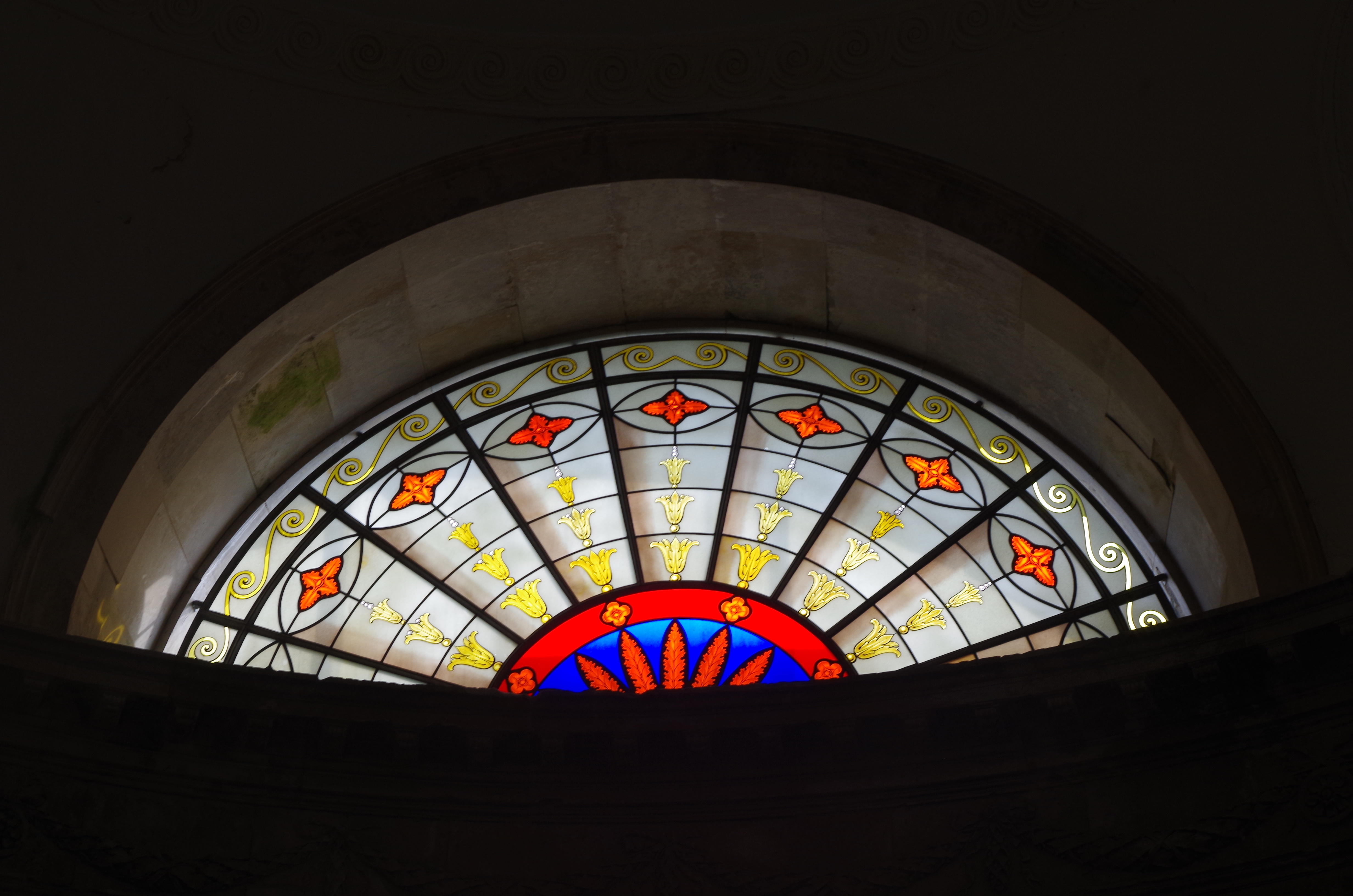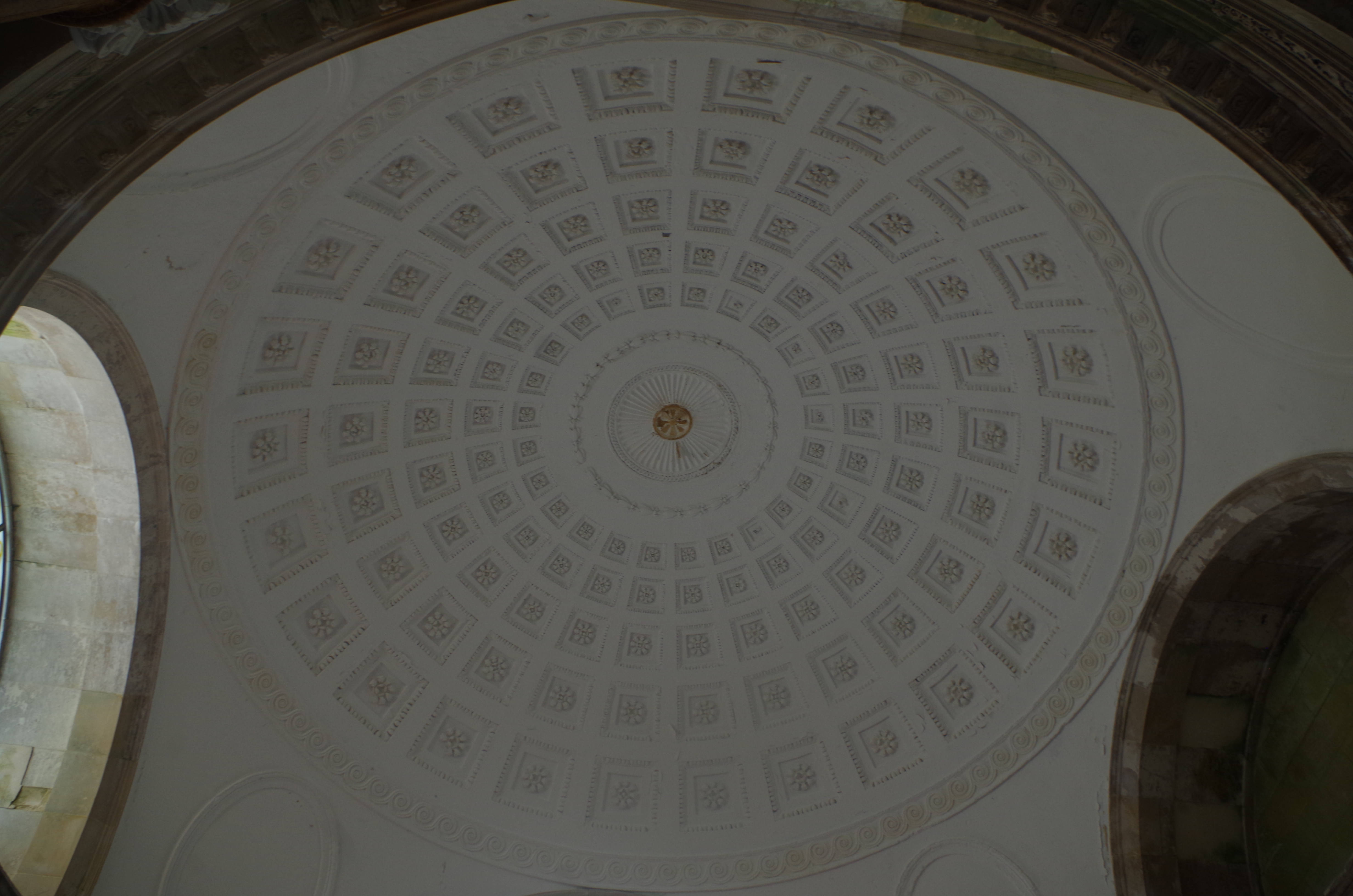 On my way back from the village and the church, as I come into sight of the Mausoleum, the rangers waved and I climbed the steps again for a last look. The late afternoon sun shone through the lunettes and created a lovely reflection on one of the chapel’s walls.