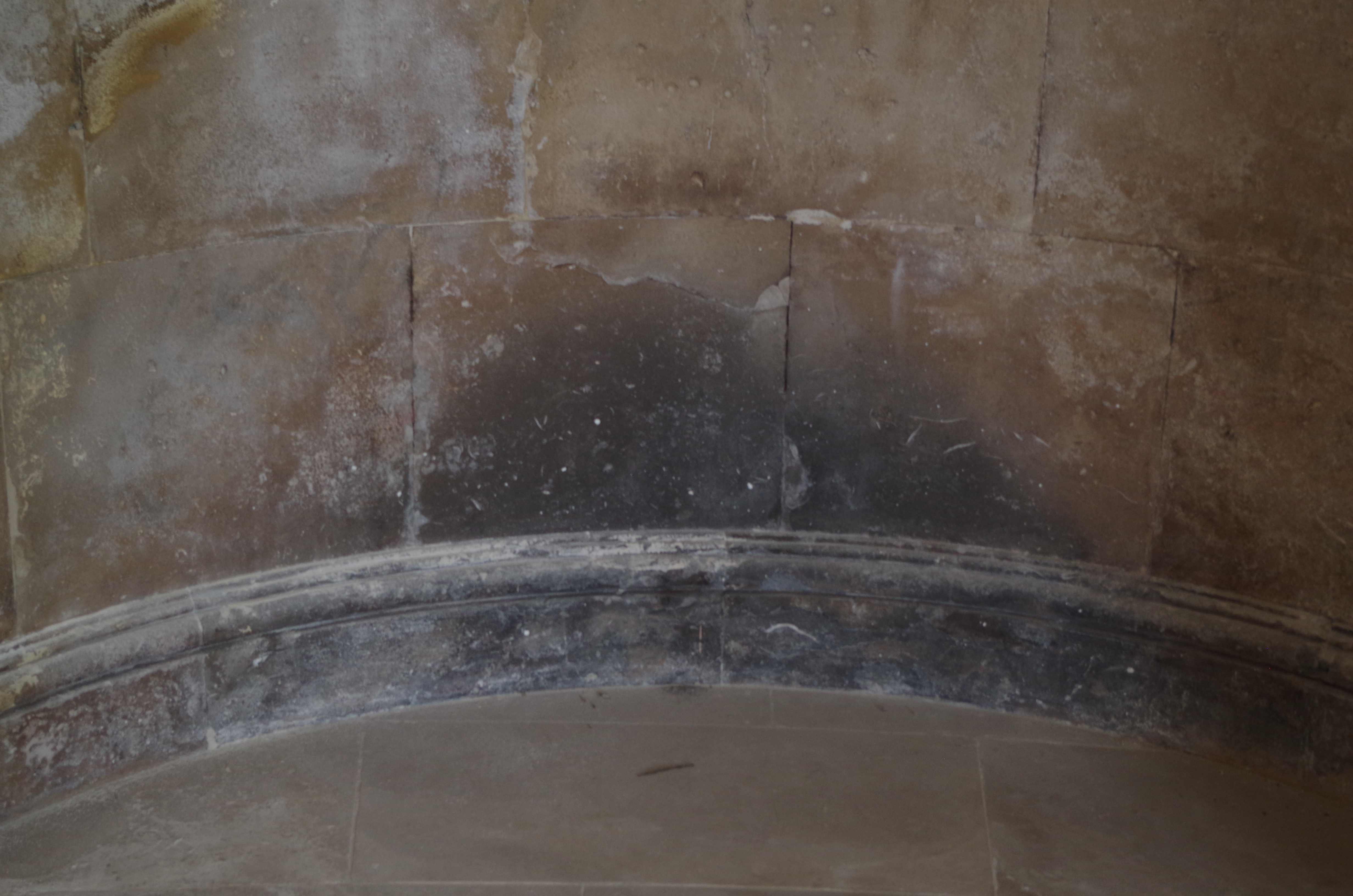 A National Trust sign perched on the floor pointed out the problems with the Mausoleum in that condensation was building up in the lunette arches due, possibly, to its design.