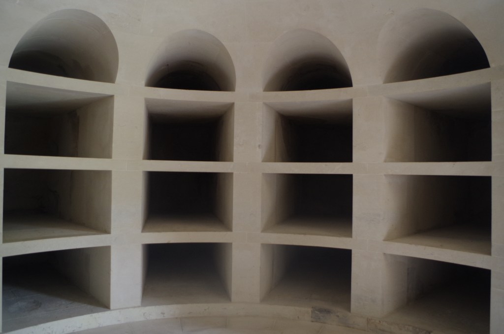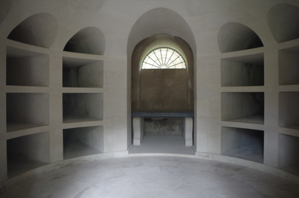Then I returned down the central steps, went around the side of the Mausoleum to the back. A small flight of stairs took me down into what was originally envisaged to be the burial chamber beneath the chapel. This was where the Earls of Darnley were supposed to eternally rest once the Mausoleum was consecrated. But, alas, it was never to be and the 24 loculi, or Latin for ‘small spaces’, have always been vacant. Above the main loculi are smaller ones which were intended for children and indicates the mortality rate in Georgian England. The coffins of the Earls of Darnley and their families would have been large and heavy. This was because they had to be lead lined to stop the body fluids from seeping out.