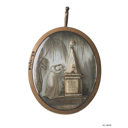 But from the late 18th century and into the 19th century it was a frequent motif on mourning jewellery and here is another example from the Museum of London. They were often associated, in the Classical style, with figures of mourning women.