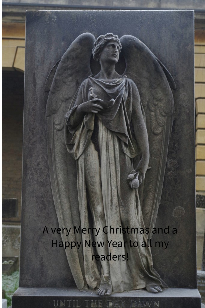 This image was taken last year in Brompton Cemetery, London on a frosty day and I liked the way that Mother Nature had outlined and emphasised the detail on the carving especially on the wings and the drapery. It’s very much in the Classical style but sadly I can’t recall the name on the memorial.