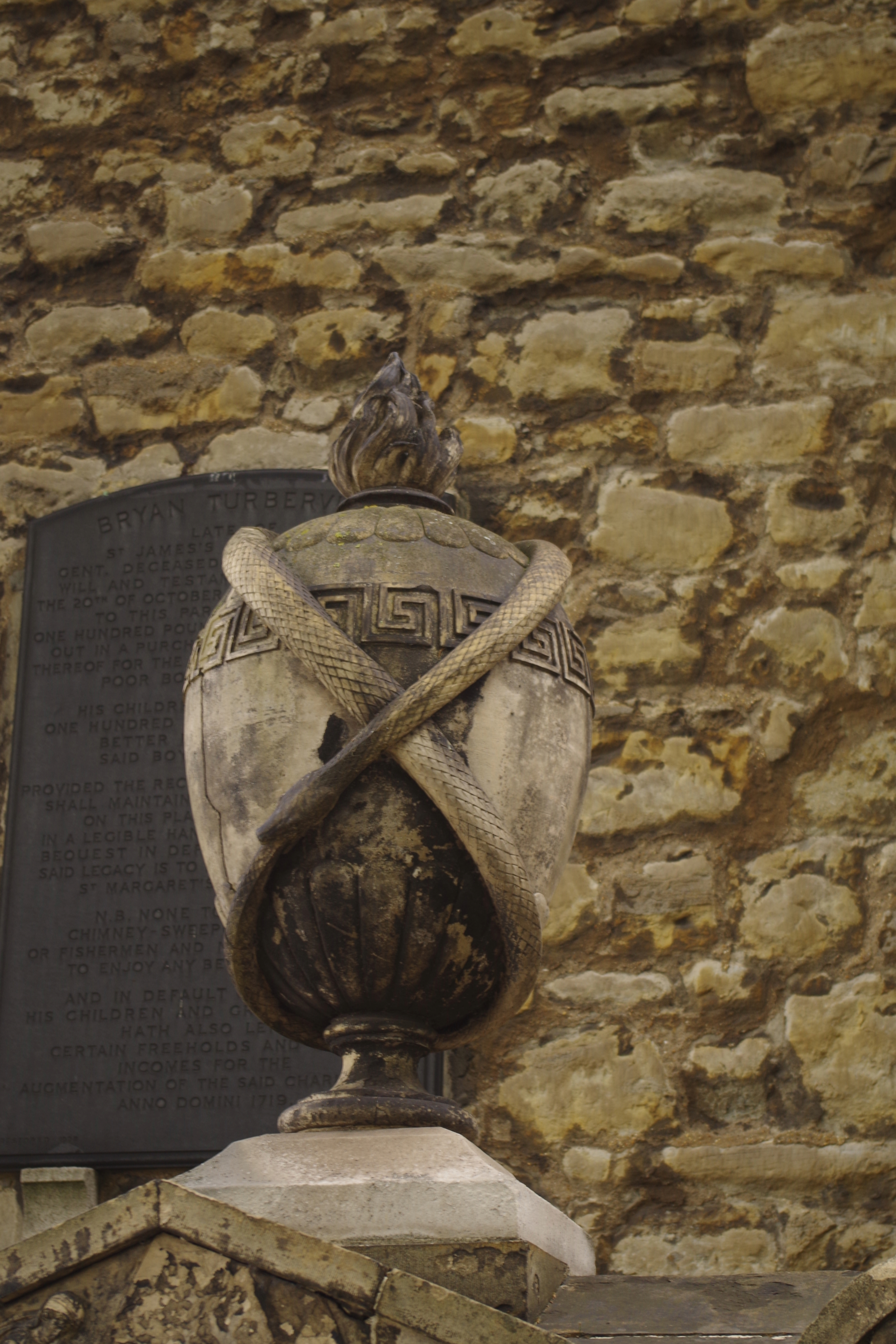 But it’s the enigmatic carvings that attracted me to the Tradescant tomb and in Part 2 I will discuss these further. However, these are not the original carvings as after two restorations, in 1773 and 1853, the scenes and creatures depicted have subtly changed especially the Hydra sculpture.
