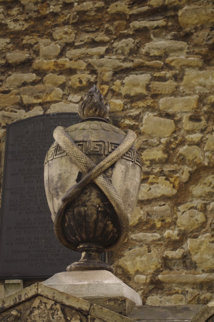 Despite the changes to the carvings, the Tradescant tomb is a magnificent survivor with five members of the family being commemorated. The enigmatic carvings, the epitaph and one woman’s determination have all added to the legendary Tradescant reputation. It’s a real sight to see and there are other interesting memorials in the ex-churchyard as well. For example, there is one dedicated to Admiral Bligh of Mutiny on the Bounty fame and there is a wonderful ouroboros on another, the Sealy family monument.