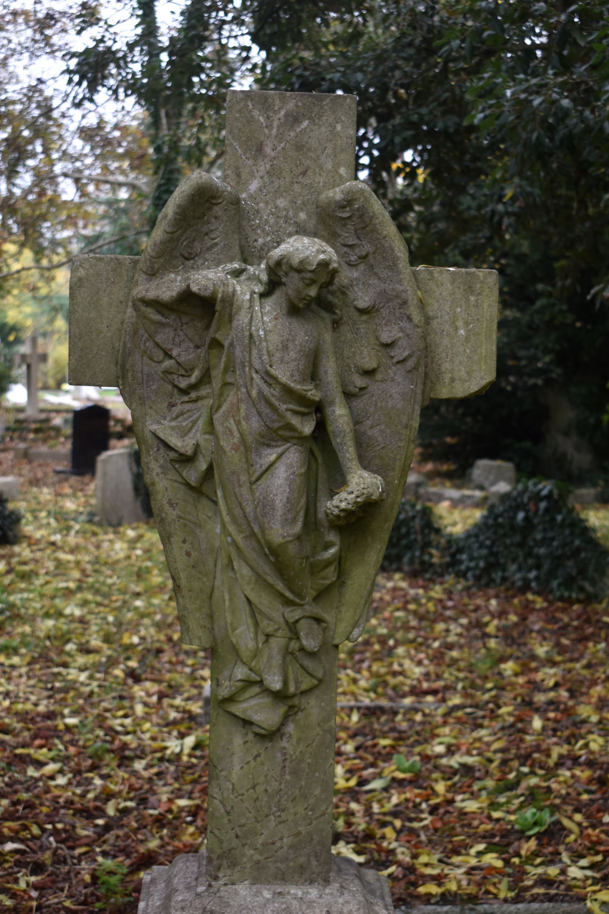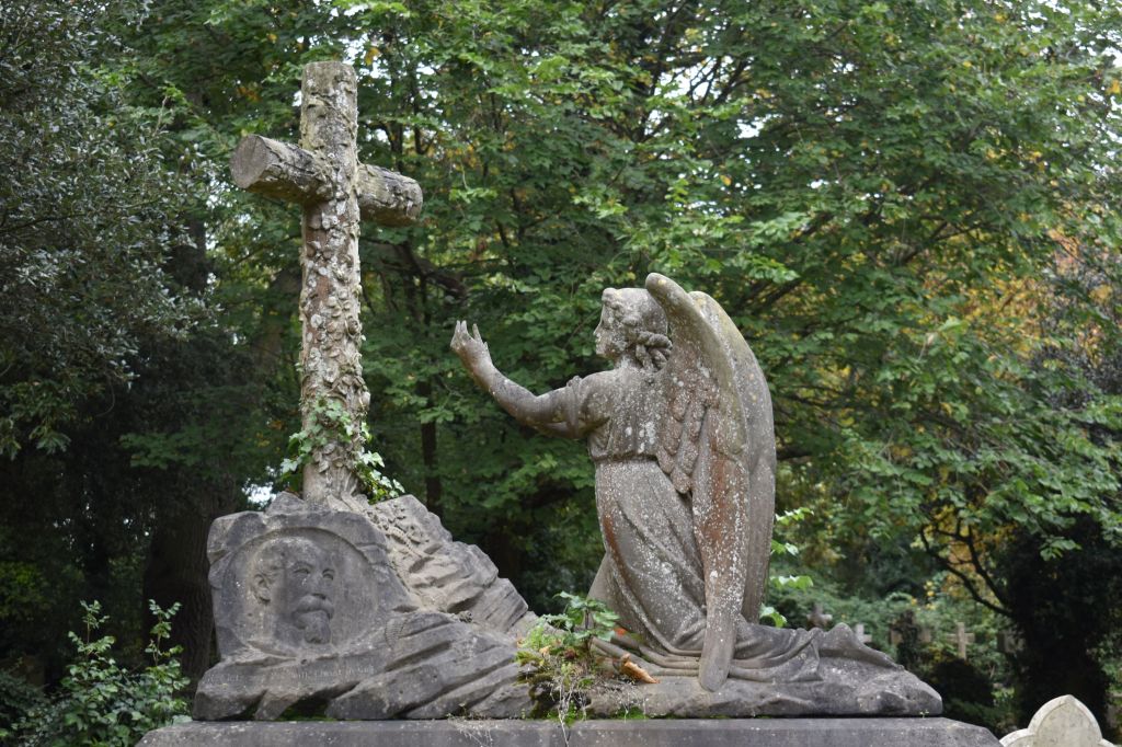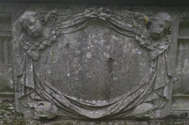 On another memorial two small faces, presumably from the angelic host, peer out from either side of the clouds surrounding a crown. It’s a representation of the reward that awaits the faithful in heaven. This verse from the Bible refers to it: