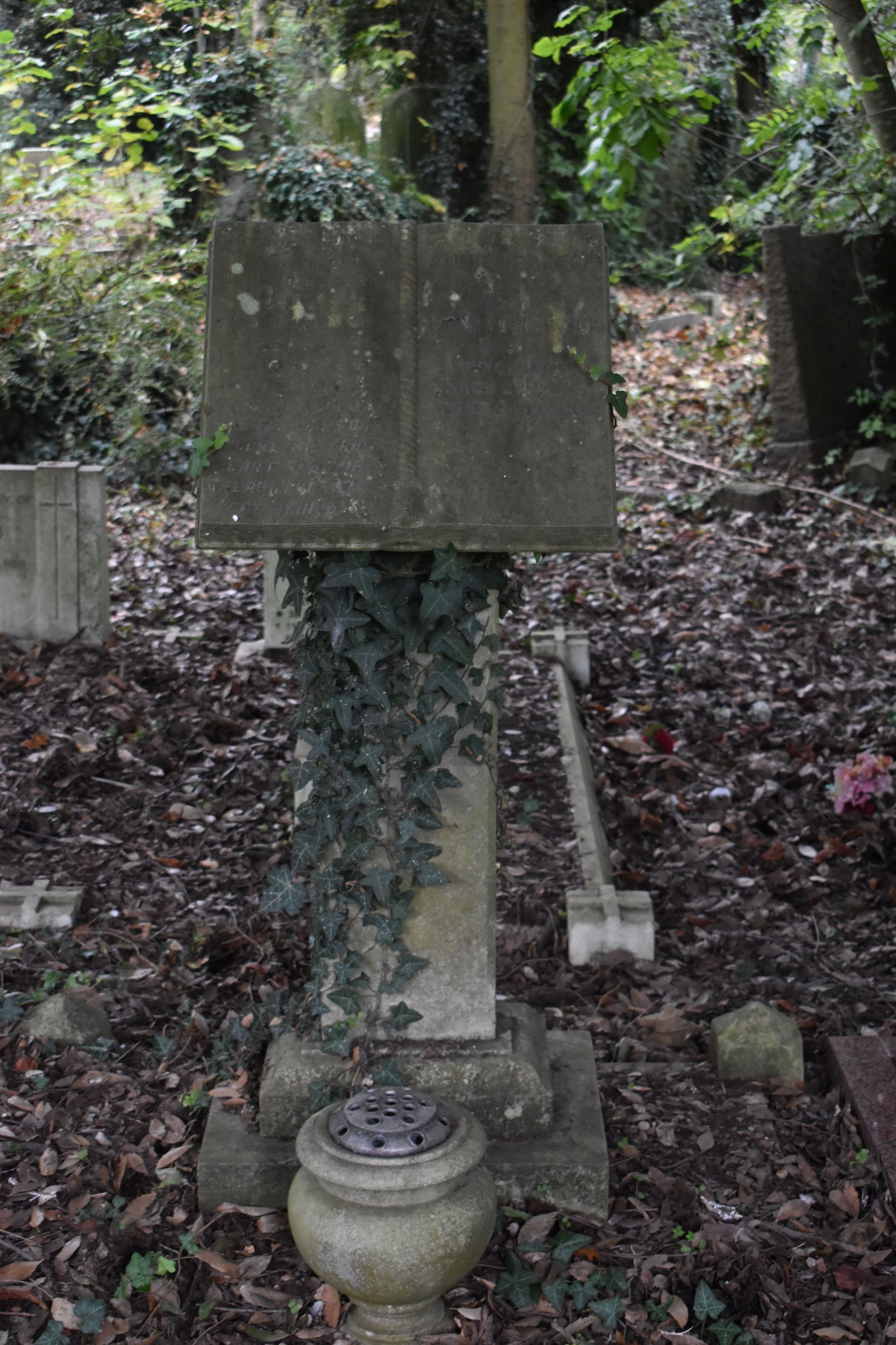 A plump faced death’s head is surrounded by another open book and what I think maybe a small skull in the far corner of the stone.
