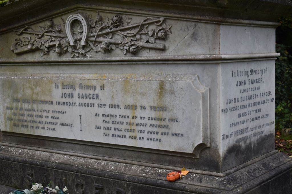 On the other side of the graveyard is a large chest tomb. There is a dedication and an armorial on its top and I feel that some patient research in St George’s burial registers may reveal the incumbent’s identity. There are blank cartouches on each side with death’s heads on top and two skulls beneath each one. At one end are palm fronds which are a Roman symbol of victory which were then adapted by the Christians as a martyr’s triumph of death. The palm as a symbol originated in the ancient Near East and Mediterranean region and is a powerful motif of victory, triumph, peace and eternal life. It’s traditionally associated with Easter and Palm Sunday and Christs’ resurrection and victory over death. On the other end of the tomb are what appear to be olive flowers. The olive’s association with wisdom and peace originally came from Greek mythology when the goddess, Athena, presented an olive tree to the city that was to become Athens. Successive Greek ambassadors then continued the tradtion by offering an olive branch of peace to indicate their goiod intentions. The olive tree is also associated with longevity, fertility, maturity, fruitfulness and prosperity. In the Bible, Noah sent the dove out after the Flood to see if the floodwaters had receded and when it returned with an olive leaf in its beak Noah knew that the Flood had ended. Even today the phrase ‘ offering an olive branch’ means the someone wants to make peace. But in this context the olive branch may mwean that the soul has departed with the peace of God. So one memorial incorporates powerful motifs of mortality and resurrection.