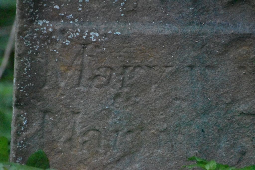 The left hand side of the headstone showing the word ‘Mary’. © Carole Tyrrell