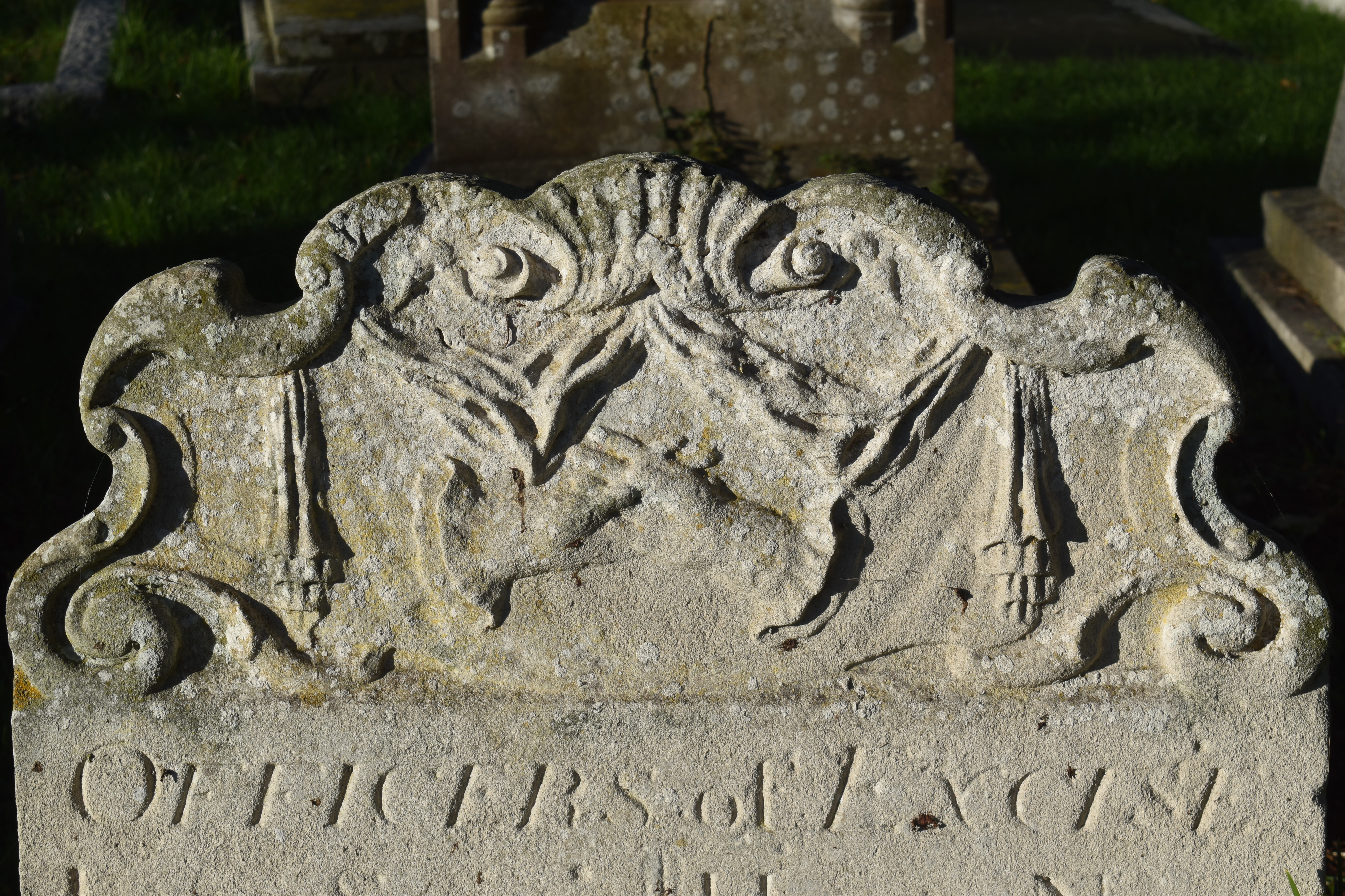 The top of the headstone showing the symbols. © Carole Tyrrell