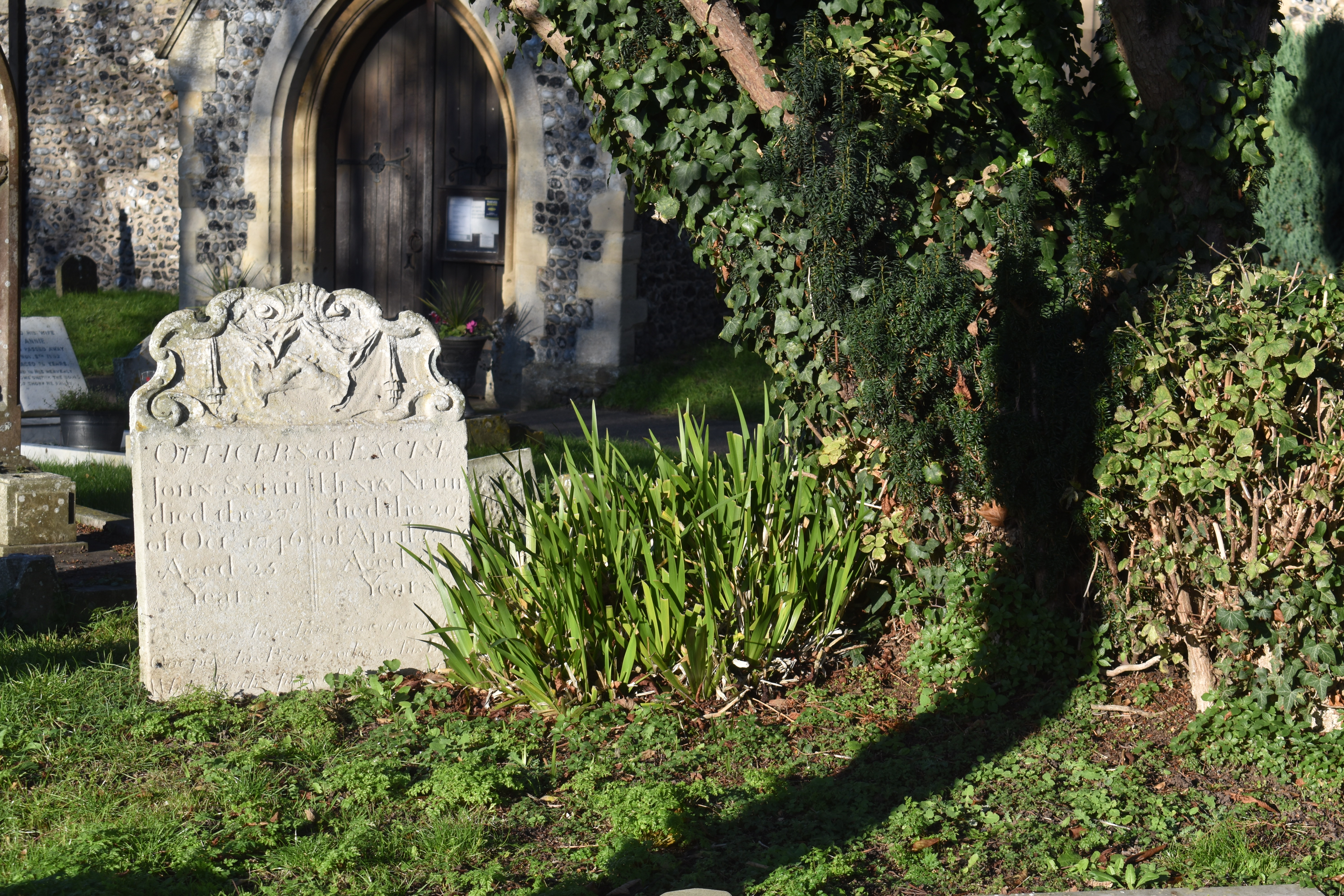 This headstone has intrigued me ever since I first saw it while exploring the fascinating churchyard of All Saints. The church is the oldest building still standing within the village and there may have been one on the site in Saxon times. So many questions came to mind. Firstly, what is an officer of excise? And why are they buried together with such a disparity in their dates of death? And finally, what is the near illegible verse carved at the base of the headstone?