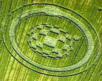 Although the ouroboros is usually depicted as a full circle, this is one that I found in my local church, St Georges in Beckenham. On first glance, it merely looks like an attractive, rippling border around the name Harriet and it dates from 1815. But on a recent visit, I looked closer and realised that it was actually composed of 2 entwined snakes, each biting their own tail. When I spoke to a churchwarden, she had always thought that, due to the patterning on the snakes’ bodies, that it was two entangled pieces of rope. It is a poignant memorial to a young wife who died aged 25 after suffering the ‘most acute and lingering pains.’ So it would have been a potent reminder of resurrection. More recently, the ouroboros has also appeared as part of a crop circle.
