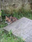 A chaffinch called loudly for its mate from the closed part of the churchyard. I had explored this in October and seen its large carpet of prickly sweet chestnuts as a fox had turned tail and run back to where it had come from. There has been a piece of bone abandoned on top of a flat headstone and I hoped that the fox had brought it in from a nearby butchers rubbish bin…….now alas this part of the churchyard is closed due to Health and Safety as it’s so overgrown. On this visit I disturbed a fluffy ginger and white cat who soon fled in the same direction as the fox.