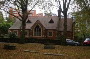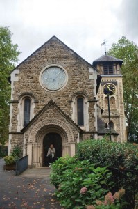 The Research History Group of Brompton Cemetery visited on an overcast September afternoon when the churchyard, or park, as it’s now known seemed sombre and silent under the canopy of the 160 year old tress. But it wasn’t always like this. Our knowledgeable guide, Lester Hillman, told us that during the 19th century, instead of the elegant iron railings that border the front of the churchyard , there had been pubs and adjacent to the church there had been a terrace of houses.