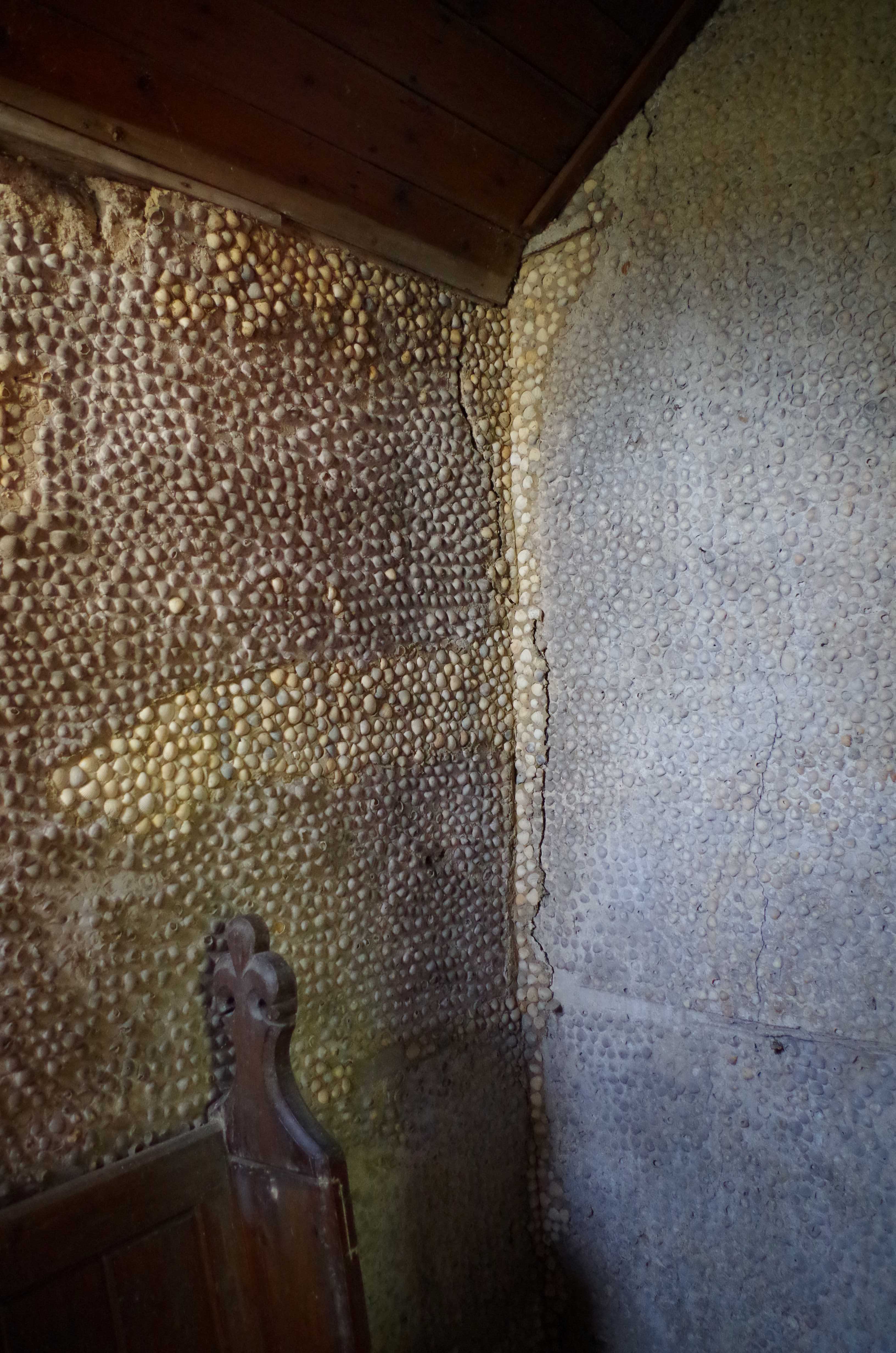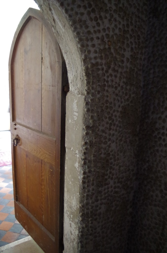 But it’s the thousands of cockleshells that made me catch my breath. They are floor to ceiling, arranged in patterns with newer ones being cemented in. I have to say that it did feel a little claustrophobic. The vestry dates back to the 19th century and is considered to be either a reminder or perhaps homage to the shell being the symbol of the saint, St James. Shells would be worn in pilgrims’ hats as they went on the trail to his shrine in Santiago de Compostela. Above the door, and supposed to be, are initials and a date which may be 1833 or 1838. The initials are I.M. and I.C. CWARDENS which could stand for John Murton and John Comport churchwardens. I was looking in the wrong place so didn’t spot it but perhaps on another visit…. you do need a few minutes just to take it all in and try not to touch them although it is a very tactile surface.