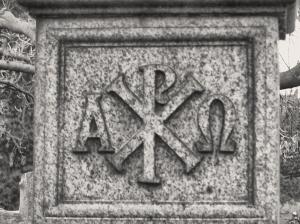 However, Douglas Fielder in ‘Stories in Stone’ has suggested the Alpha and Omega may be the representation of the beginning and end of a life and that would certainly fit in with their use within cemeteries. J C Cooper’s definition is that they denote the beginning and end of all things.
